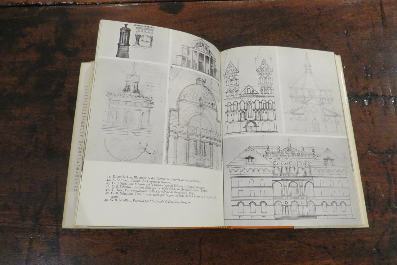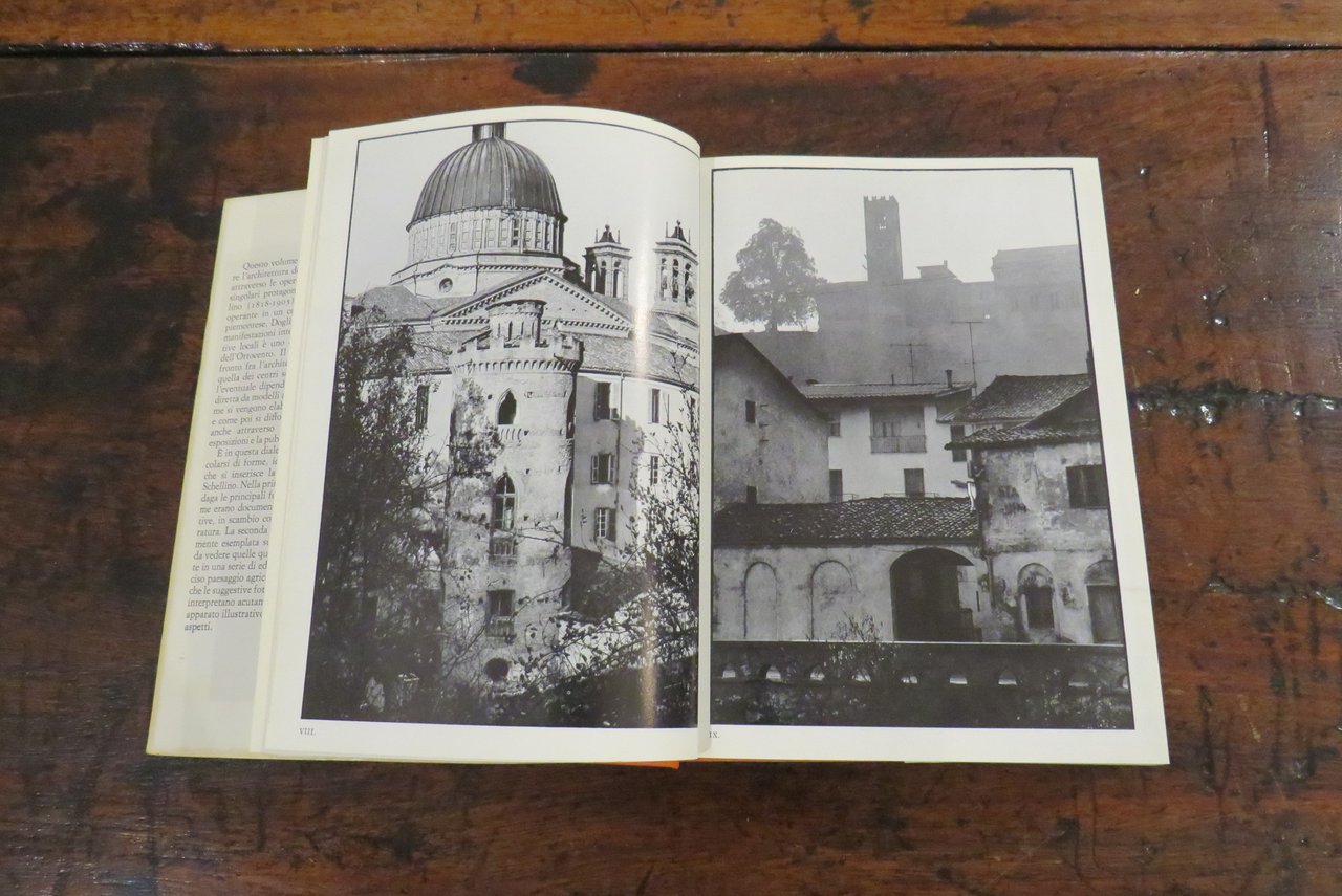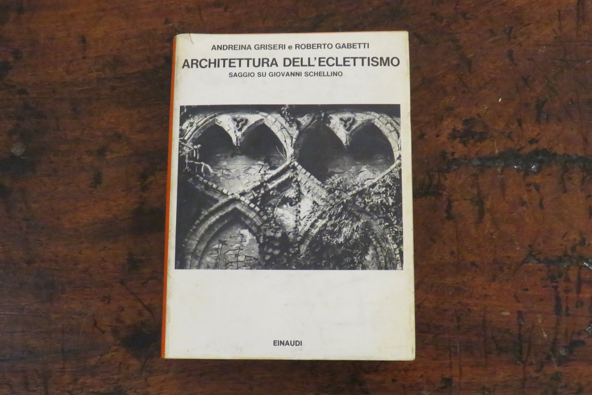 Torino, Einaudi, 1973. In -8 (mm. 150,6x210,5), pp. XV, 320, con 25 splendide e suggestive fotografie in bianco e nero di Ugo Mulas, a piena e su doppia pagina e 172 tavole illustrate in nero fuori testo. Legatura editoriale muta tutta tela arancione, con autori e titolo impressi in nero al dorso, con sovraccoperta illustrata in nero al piatto anteriore e posteriore. Prefazione. Collana "Saggi" n. 519. Dall’aletta anteriore della sovraccoperta: "Questo volume si propone di indagare l’architettura dell’eclettismo europeo attraverso le opere di uno dei suoi più singolari protagonisti: Giovanni Schellino (1818-1905), geometra-architetto operante in un centro della campagna piemontese, Dogliani". Dedica con invio autografo dell’autrice alla seconda carta bianca. Prima edizione. La sovraccoperta presenta un lieve strappetto al margine superiore sinistro e lievi tracce d’usura, margini superiori leggermente bruniti, ma nell’insieme ottimo esemplare.