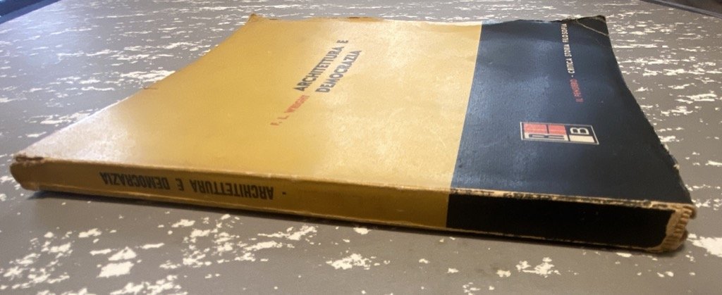 Brossura editoriale a stampa, cm 18.5 x 16, pp XII 151 (5). Collezione Pensiero. Buono stato, lievi segni d’uso sulla brossura. Prima edizione italiana, con traduzione di Giuliana Baracco, delle conferenze tenute da Wright a Princeton nel 1930 col titolo Modern Architecture. Si tratta del primo libro di Wright pubblicato in italiano, in anticipo di un mese su Architettura organica pubblicato da Muggiani nell'agosto 1945. La nota introduttiva è tratta dalla conferenza di Edoardo Persico del 1935 «Profezia dell’Architettura».