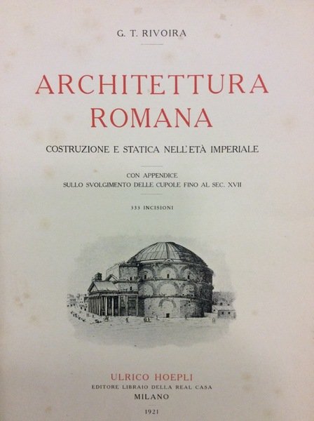 ARCHITETTURA ROMANA. - Costruzione e statica nell'età imperiale. Con appendice sullo svolgimento delle cupole fino al sec. XVII.