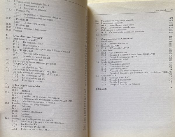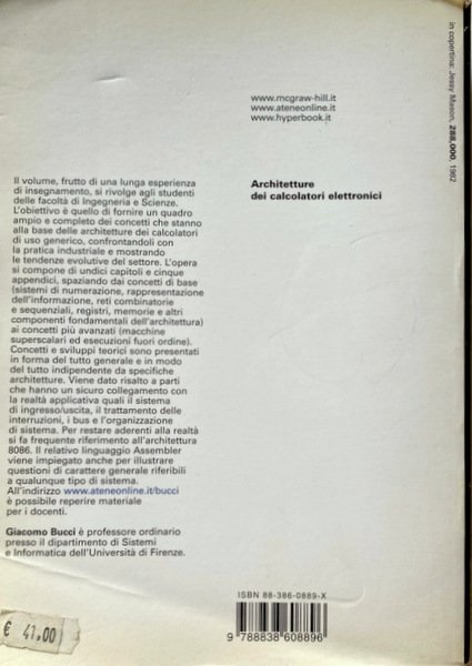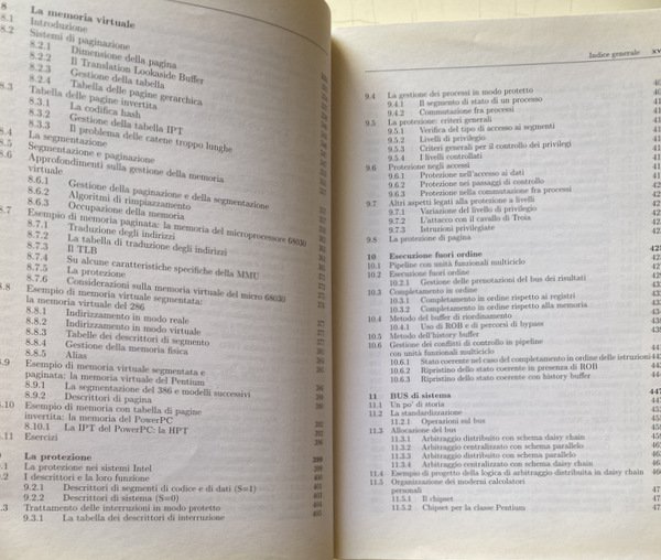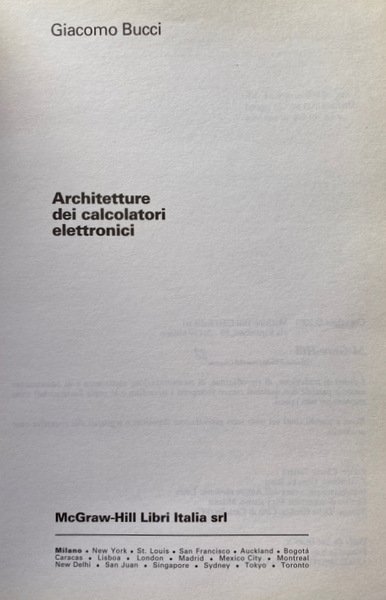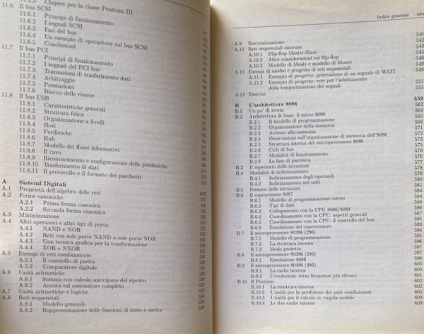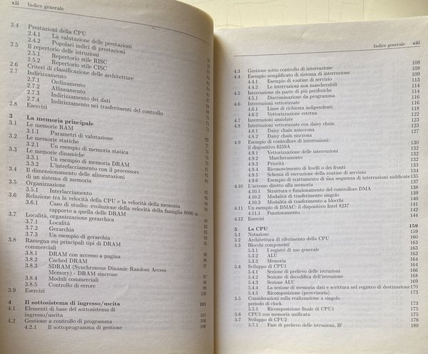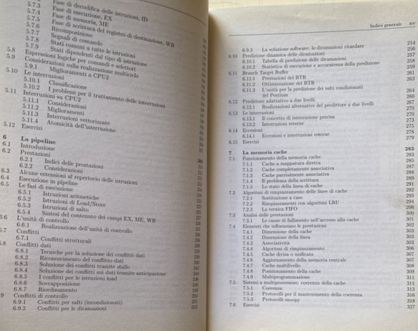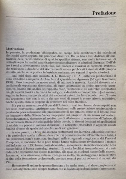 Soggetti: Manuali universitari, Ingegneria elettronica, Scienze, Tecnica, Informatica, Concetti, Processori, Computers, Calcolatori elettronici, Architetture superscalari, VLIW, Multicore, Multithreading, Macchine vettoriali, GPU, Inoltre, Tecnologie, Sistemi di Interconnessione, Bus PCIe, Hypertransport, QPI, Informazione, Reti logiche, Architettura, x86, Esercizi, Anni Duemila, Soluzioni, CPU, Pipeline, Memoria, Ingresso-uscita, Interruzioni, Pratica industriale, ARM, Macchine, Elaboratori, Struttura, Fondamenti, Didattica, Strutture avanzate, Progettazione, Sistemi digitali, Sistemi operativi, Teoria, Collezionismo, Guide, Istruzioni, Reti combinatorie, Sequenziali, Registri, Memorie, PC, Consultazione, Riferimento, Bibliografia, Sigle, J. L. Hennessy, D.A. Patterson, Silicon Valley, PowerPC, Intel, Assembler 8086, Pipeline, Gerarchia, Linguaggio informatico, Memoria virtuale, Cache, Allocazione, Protezione, Bit, Pentium, Numeri, Aritmetica binaria, Conversione, Algebra, Logiche, Unità, RISC, CISC, RAM, DRAM, Velocità, Prestazioni, Errori, Daisy Chain, Periferiche, 8259A, DMAC, Blocchi, Interruzioni, Routine di servizio, Conflitti, Diramazioni, Comando, Scrittura, Load, Branch Target Buffer, BTB, Multiprogrammazione, Multilivello, FIFO, Algoritmo, Algoritmi, 68030, Indirizzi, Catene, HPT, Tabelle, Arbitraggio, Chipset, SCSI, Host, Hub, Pacchetti, Cavo, Istruzioni, Flussi, Trasferimento, Dati, Protocolli, NAND, NOR, NXOR, Mealy, Moore, WAIT, Salti, Emulazione, MMX, Collegamento, Caricamento, Trasmissione, LAN, Rete Ethernet, Internet, Assemblatore, Standard, Libri da collezione, END, INCLUDE, MASM, ASSUME, TCP, IP, USB, Celeron, IBM, DOS, Boole, Bill Gates, Stanley Kubrick, JEDEC, ISO, Calcolo, Programmatori, University textbooks, Electronic engineering, Sciences, Technique, Informatics, Concepts, Processors, Computers, Electronic calculators, Superscalar architectures, Vector machines, Technologies, Interconnection systems, Information, Logical networks, Architecture, Exercises, The 2000s, Solutions, Input-output, Interruptions, Industrial practice, Machines, Computers, Structure, Fundamentals, Didactics, Advanced structures, Design, Digital systems, Operating systems, Theory, Collecting, Guides, Instructions, Combinatorial networks, Sequential, Registers, Memories, Consultation, Reference, Bibliography, Acronyms, Hierarchy, Computer language, Virtual memory, Allocation, Protection, Numbers, Binary arithmetic, Conversion, Logical, Unit, Speed, Performance, Errors, Peripherals, Blocks, Interruptions, Service routines, Conflicts, Branches, Command, Writing, Multiprogramming, Multilevel, Algorithm, Algorithms, Addresses, Chains, Tables, Arbitrage, Packages, Cable, Instructions, Streams, Transfer, Data, Protocols, Hops, Emulation, Link, Upload, Broadcast, Network, Standards, Collectable Books, Calculation, Programmers