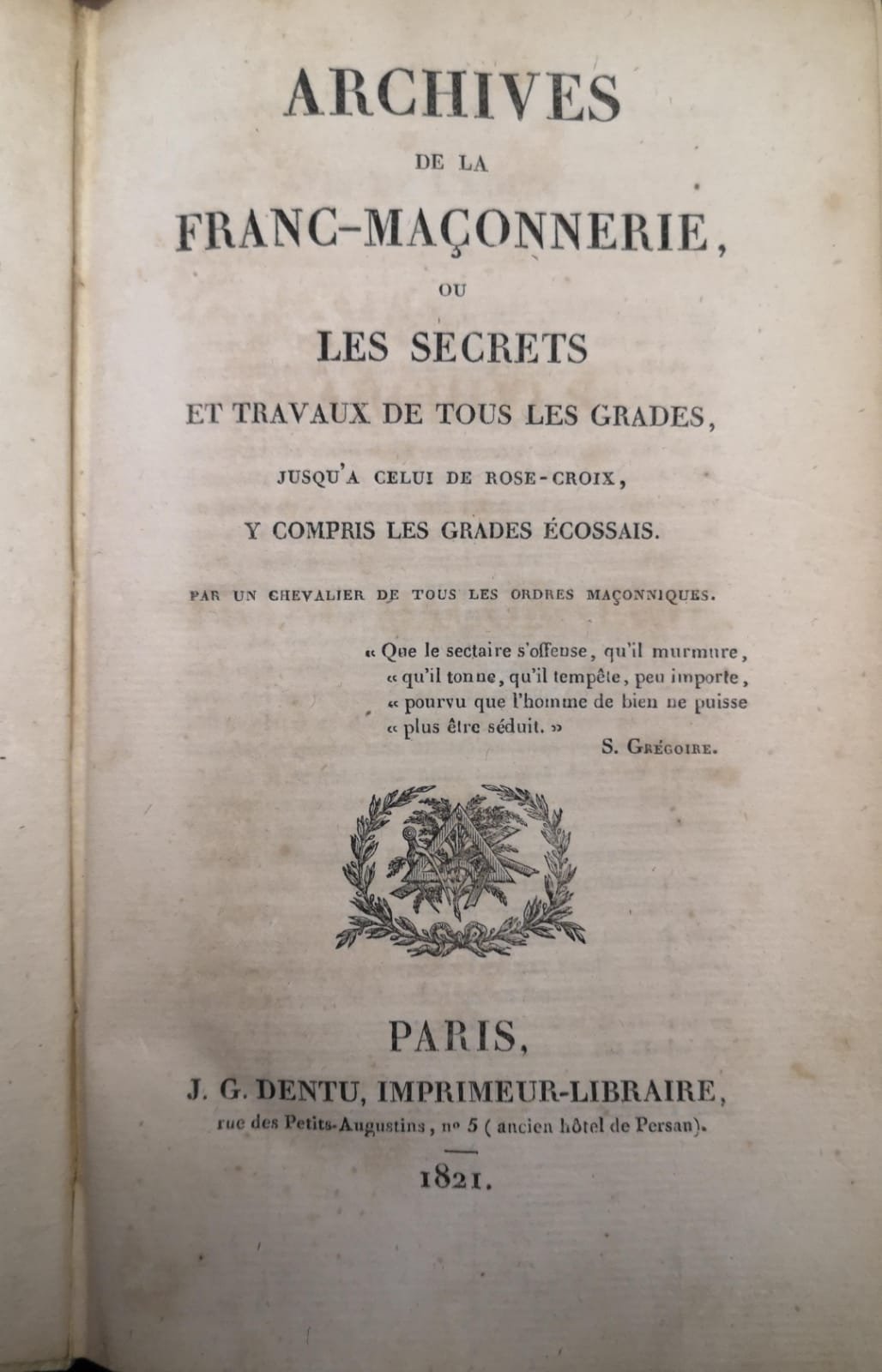 ARCHIVES DE LA FRANC-MACONNERIE. - Ou les secrets et travaux de tous les grades, jusqu'à celui de Rose-Croix, y compris les Grades Ecossais.