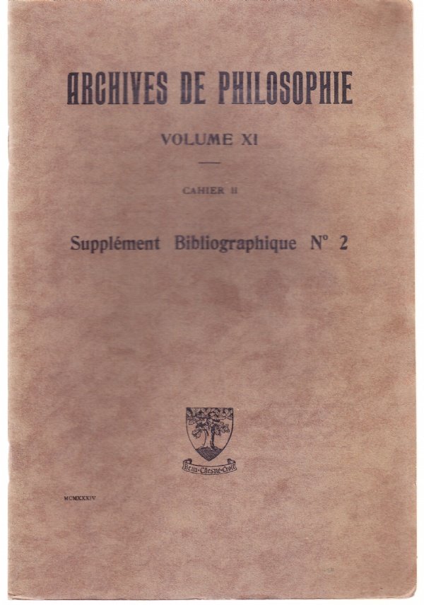Archives de Philosophie volume XI, cahier II. Supplément Bibliographique N° 2