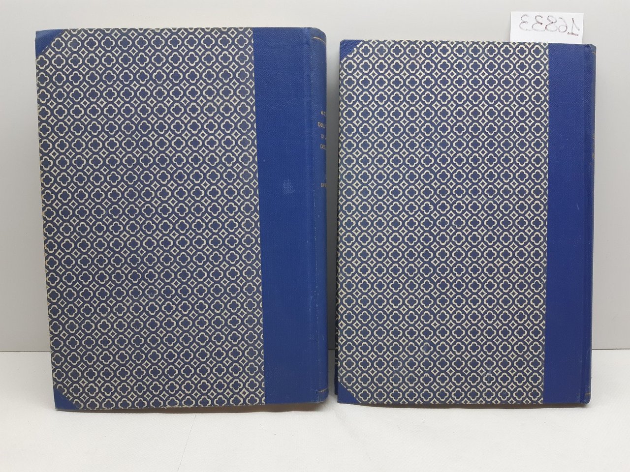 legatura in mezza tela con piatti cartonati dorso e punte in tela azzurra con titolo in oro, in discrete condizioni, tagli bruniti con qualche lieve fioritura, impolverati quelli superiori, interno in buono stato, fogli di guardia leggermente bruniti, interno in buono stato numero pagine 319 + 199 Dimensione cm 24 * 17 x 5
