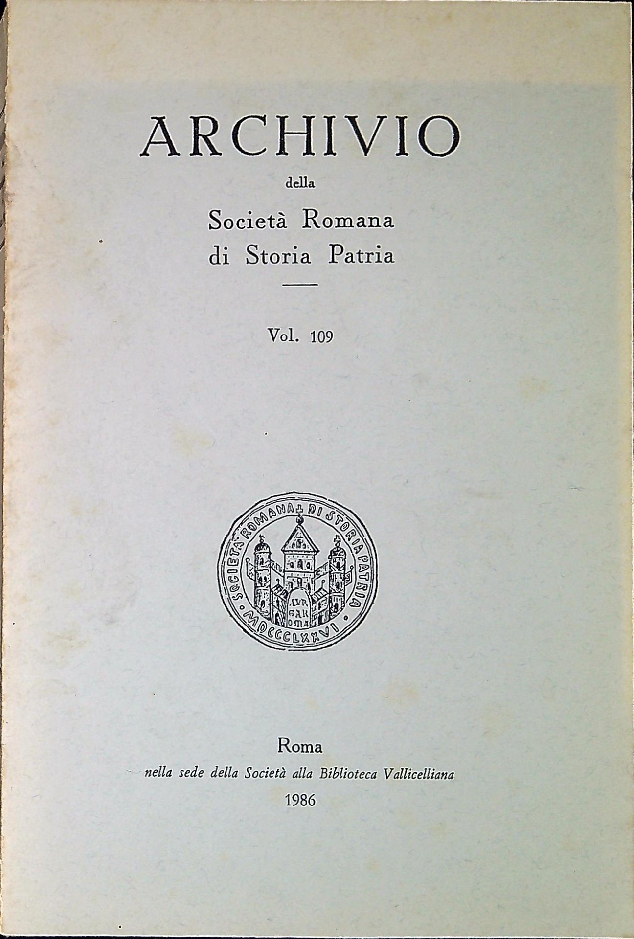AA.VV. Archivio della Società Romana di Storia Patria vol. 109. Roma, nella sede della società alla Biblioteca Vallicelliana 1986, 23 295 p. (50133)