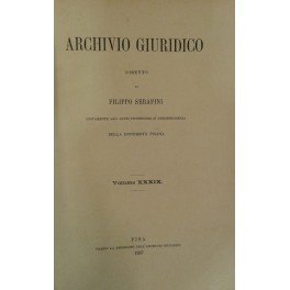 Archivio Giuridico. Diretto da Filippo Serafini. Volume XXXIX