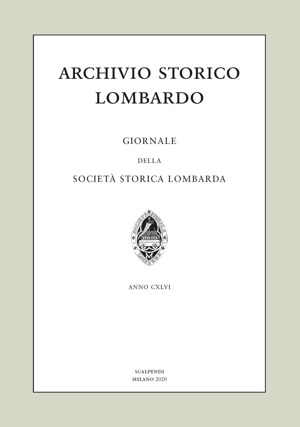 Archivio Storico Lombardo. Giornale della Società Storica Lombarda (2020). Vol. 25. Anno CXLVI., Segrate, Scalpendi, 2020