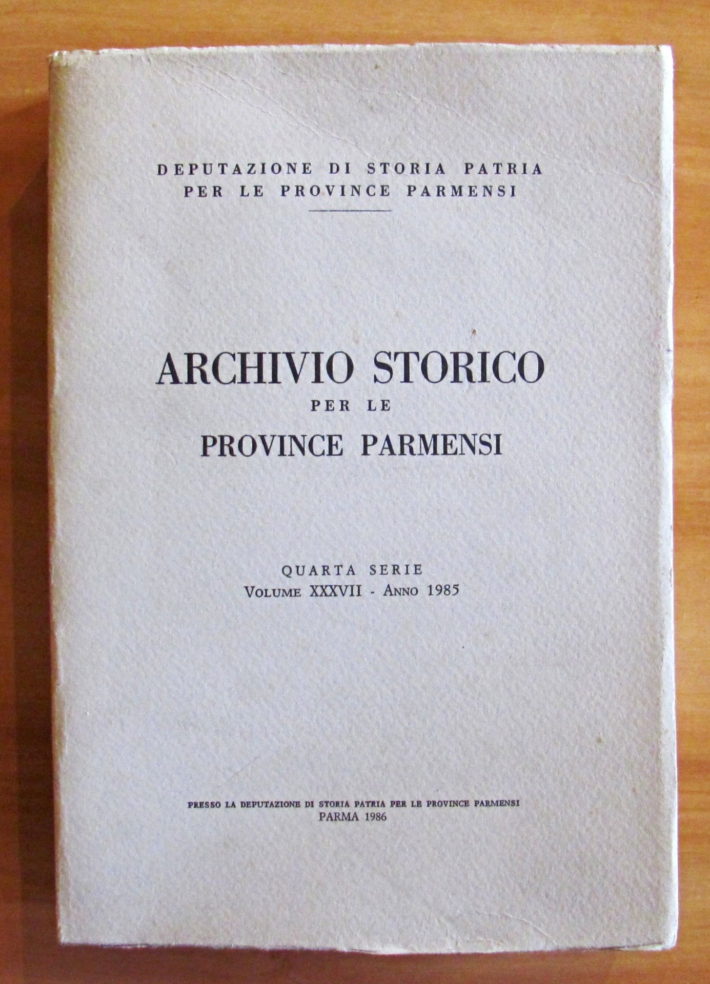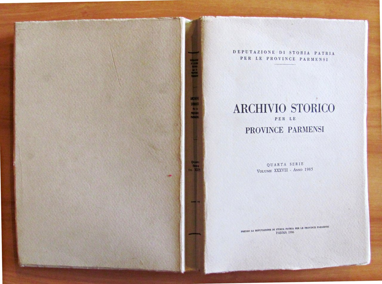 Quarta Serie - Volume XXXVII - Anno 1985. Tavole, anche fotografiche, in b/n f.t. Presso la Deputazione di Storia Patria per le Province Parmensi - Parma, 1986. Brossura editoriale. 17x25; pp.616. INTONSO/OTTIMO STATO , Ottimo (Fine)