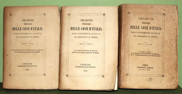 Archivio triennale delle cose d'Italia dall'avvenimento di Pio IX all'abbandono di Venezia. (Tre volumi)