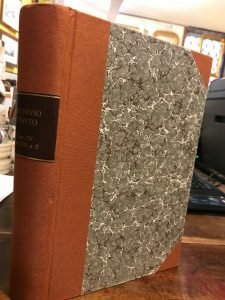 [vt] .Premiata all'esposizione di Napoli 1871 e con medaglia d'argento dal Congresso Pedagogico di Venezia 1872. Rilegati in un unico volume, conservate all'interno le brossure originali. Dagli indici: fatti di cronaca del diacono Giovanni, storia di Venezia dalla sua fondazione all'anno 1084, notizie sui dogi Pietro Orseolo, doge di Venezia, di Dalmazia e primo sposo dell'Adria, Vitale Candiano, Memmo, Ottone ecc., i Signori di Reifenberg, Durer e le sue relazion coll'arte italiana, lo Statuto di Adria nel Veneto compilato nel 1342, i dogi Flavanico, D. Contarini, D.Silvio, Faledro ecc., il documento mafffeiano di PIetro di Dane Alighieri, di una lapide antica in Asolo infissa nel muro della casa preposturale, ricerche in torno alla chiesa di S. Anastasia in Verona, un episodio della vita di T.Tasso, Cronaca Altinate, ricerche sulla tomba del doge E.Dandolo a Costantinopoli ecc. Ordinari segni dell'uso ma molto buono lo stato di conservazione. Pagg. 288; da 252 a 84, da 273 a 288; da 223 a 458, da 17 a 32. Mezza tela moderna. Mis mm 240x160