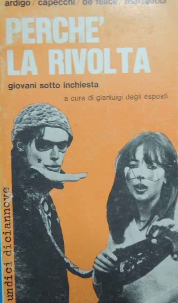 Achille Ardigò et al., Perché la rivolta. Giovani sotto inchiesta, a cura di Gianluigi Degli Espositi, Cappelli Editore, Bologna 1978, pp. 112, cm 19, br. ed. Collana Undici Diciannove. Interviste sulla rivolta giovanile degli anni Sessanta e Settanta. Interventi di: Achille Ardigò, Vittorio Capecchi, Renzo De Felice e Nicola Matteucci. Leggere tracce d’uso, minima brunitura della carta, per il resto buona copia.