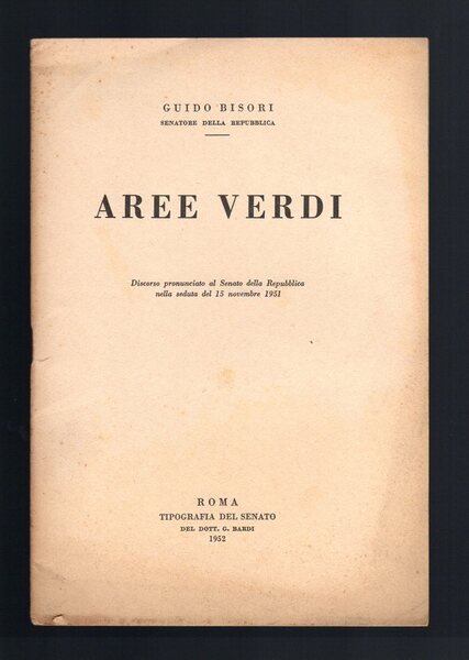Opuscolo vintage. Discorso pronunciato al Sensato della Repubblica nella seduta del 15 novembre 1951. Ordinario segno del tempo. Usura da scaffale.