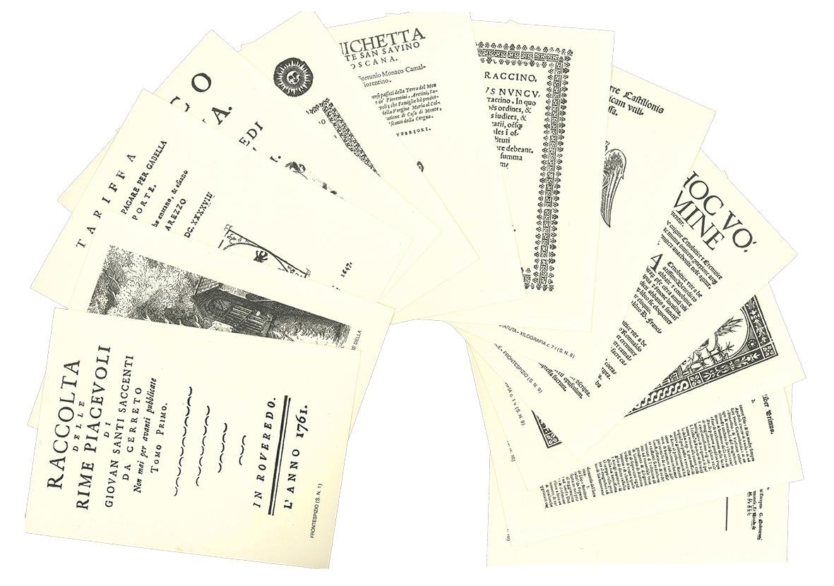 Cartellina editoriale in brossura contenente un opuscolo in 16mo (mm 166x125) di 12 pp. e [12] facsimile di frontespizi.