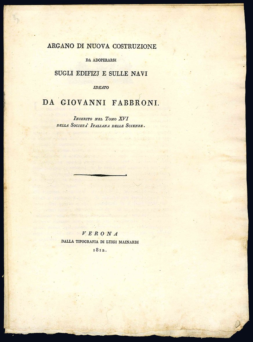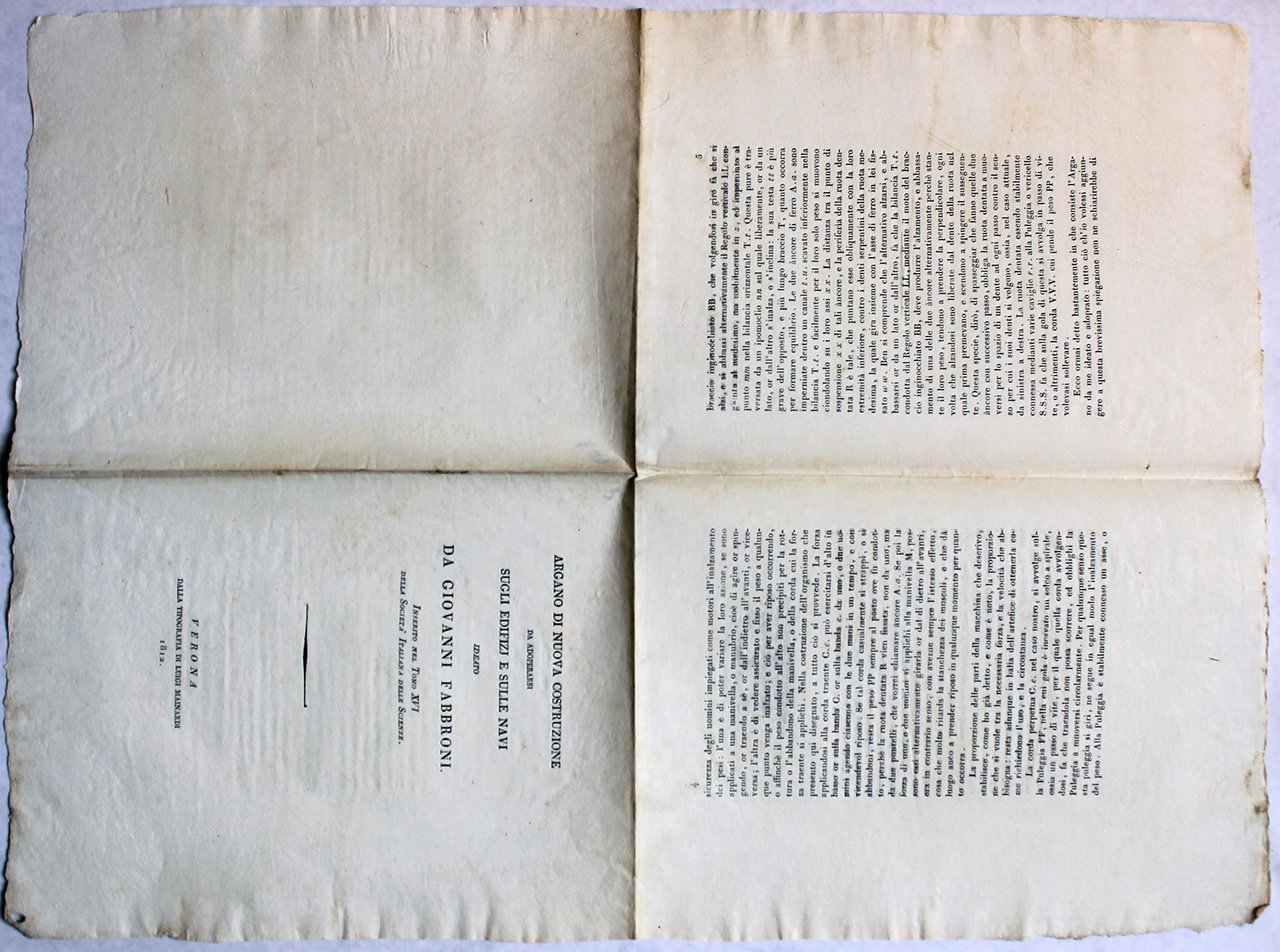 Argano di nuova costruzione da adoperarsi sugli edifizj e sulle navi ideato da Giovanni Fabbroni. Inserito nel Tomo XVI della Società Italiana delle Scienze