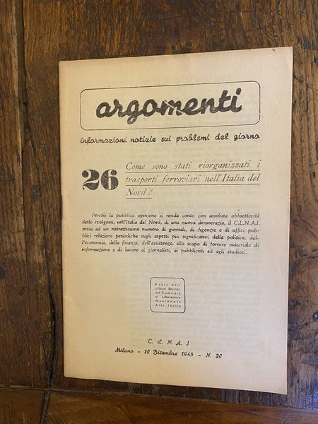 Argomenti Informazioni notizie sui problemi del giorno Numero 20 Milano 10 Dicembre 1945