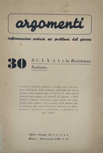 Argomenti. Informazioni notizie sui problemi del giorno. Numero 30. Il C.L.N.A.I. e la Resistenza Italiana