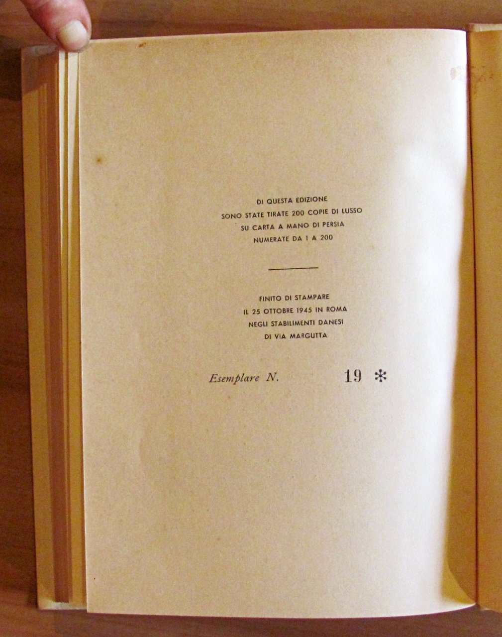 Illustrazioni in b/n n.t. e due tavole in b/n f.t. + 4 tavole fotografiche in b/n f.t. Stabilimento Danesi - Roma, 1945. Esemplare a tiratura limitata a 200 copie, nostro N.19. Cartonato editoriale con firma di vecchia appartenenza in antiporta. 16,5x22; pp.165. OTTIMO STATO , Ottimo (Fine)