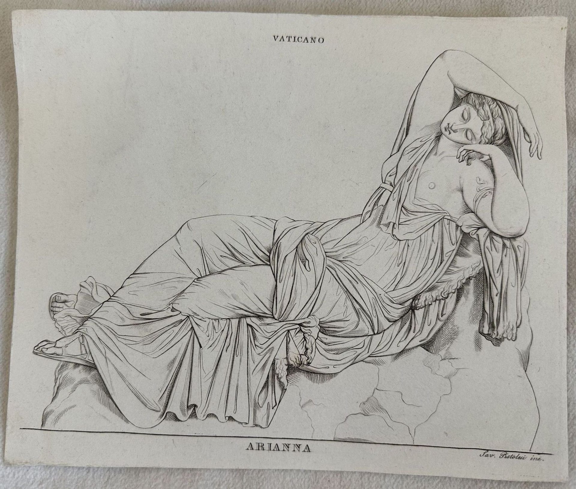 Bella acquaforte che mostra una scena mitologica. Data: 1839/40 circa Autore: Saverio Pistolesi Tecnica: acquaforte Dimensione del foglio: 16,5x20 cm Dimensione dell'incisione: 19x14,5 cm Condizioni: Buone. Alcune fioriture Nice etching showing a mythological scene Date: 1839/40 circa Author: Saverio Pistolesi Technique: etching Size of the page: 16,5x20 cm Size of the engraving: 19x14,5 cm Conditions: Good conditions. Some foxing