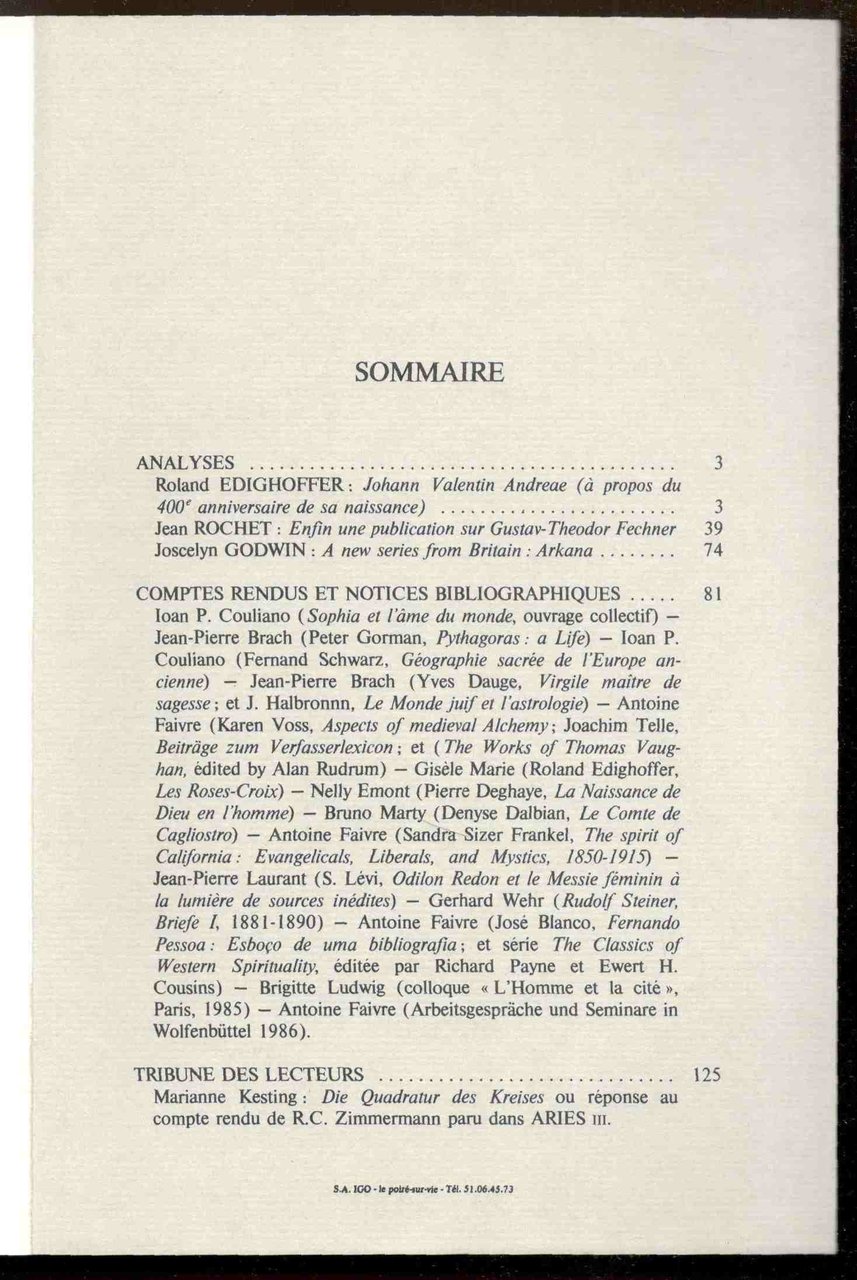 Aries. Association pour la recherche et l'information sur l'ésotérisme. N. 5, Décembre 1986