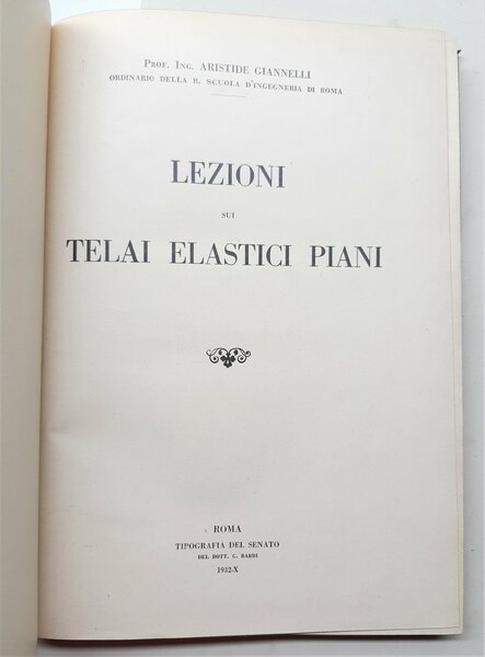 Aristide Giannelli Lezioni sui telai elastici piani Tipografia Del Senato 1932