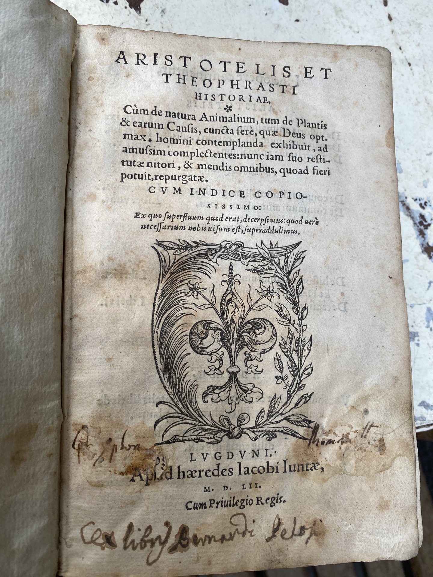 ARISTOTELIS ET THEOPHRASTI HISTORIAE, CUM DE NATURA ANIMALIUM, TUM DE PLANTIS & EARUM CAUSIS, CUNCTA FERE, QUAE DEUS OPT. MAX. HOMINI CONTEMPLANDA EXHIBUIT, AD AMUSSIM COMPLECTENTES.