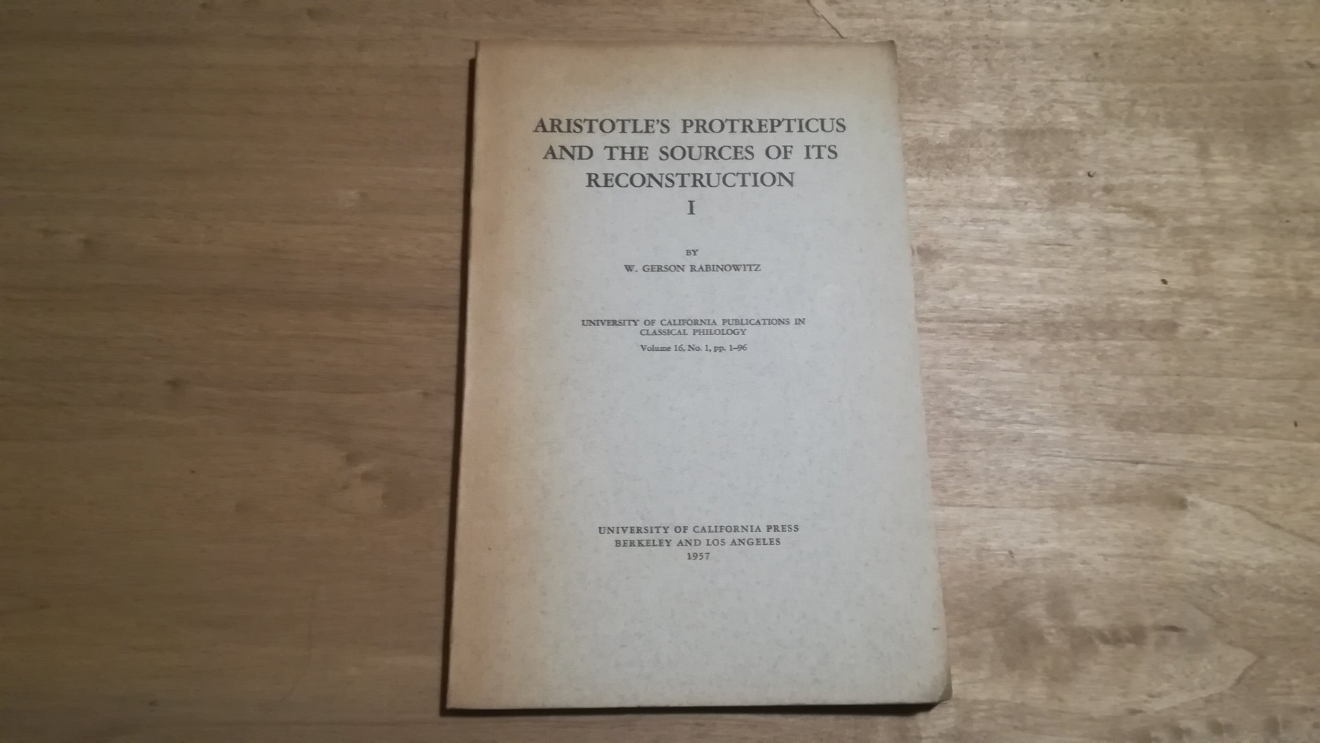 W. Gerson Rabinowitz Aristotle's protrepticus and the sources of its reconstruction I University of California press 1957 Libro in ottime condizioni, minimi segni del tempo. Non esitate a contattarci per altre foto o richieste. Saremo lieti di soddisfare ogni vostra esigenza.