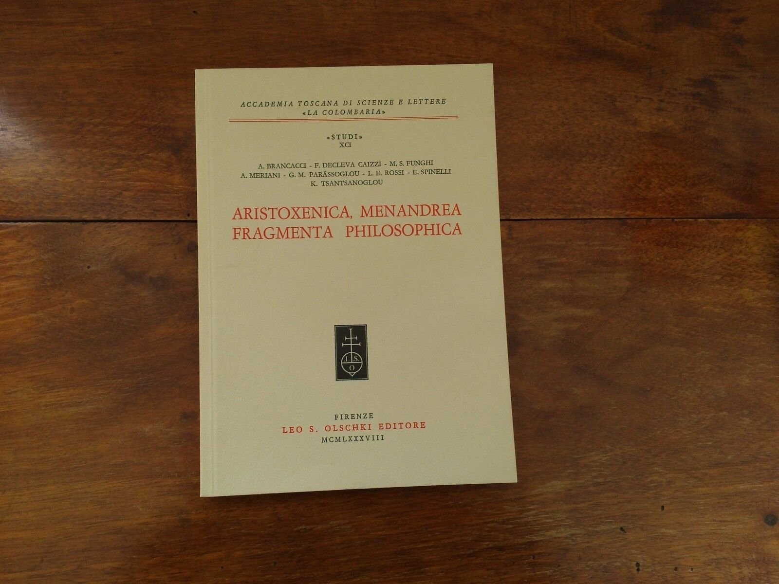 Aristoxenica, Menandrea, Fragmenta Philosophica Olschki - Prima edizione 1988 Libro in ottime condizioni, minimi segni del tempo. Non esitate a contattarci per altre foto o richieste. Saremo lieti di soddisfare ogni vostra esigenza.