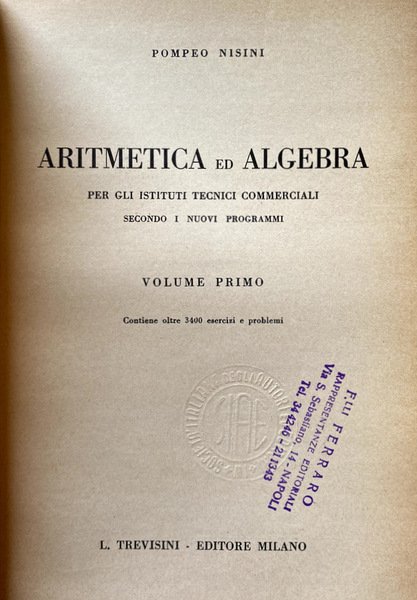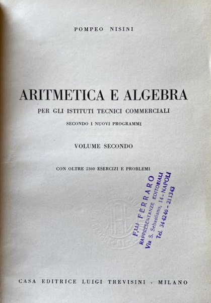 ARITMETICA ED ALGEBRA PER GLI ISTITUTI TECNICI COMMERCIALI, SECONDO I NUOVI PROGRAMMI. (CON OLTRE 3400 + 2300 ESERCIZI E PROBLEMI). VOLUME 1, 2