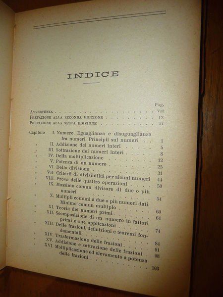 ARITMETICA RAZIONALE F. PANIZZA HOEPLI 1920 VII^ Ed.