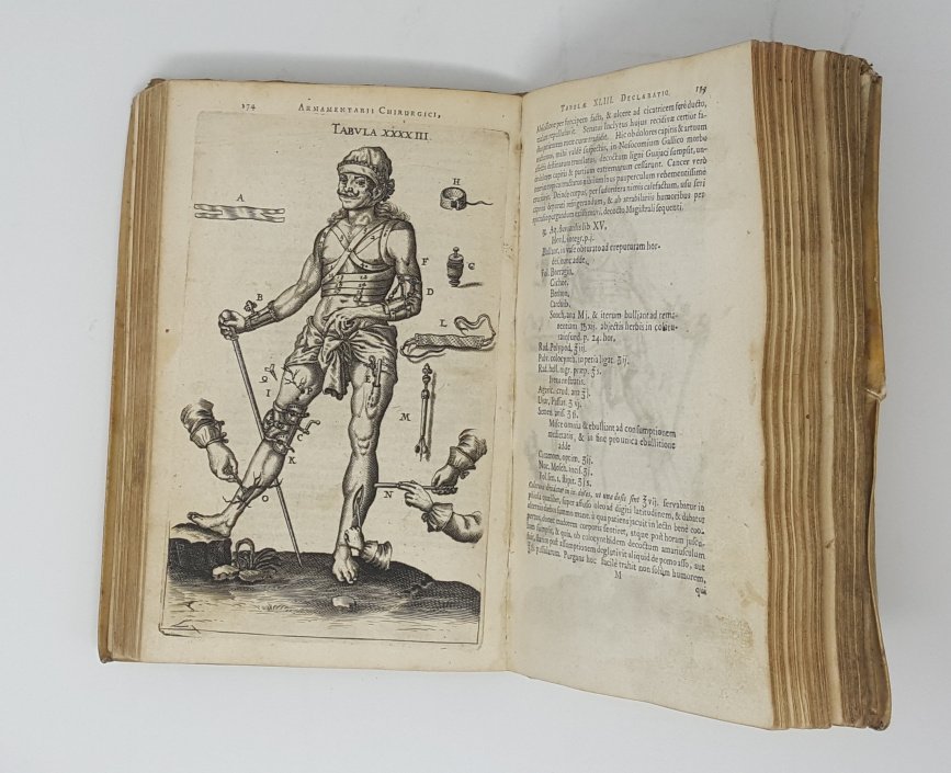 >in-8, pp. (22), 328, (14), leg. coeva p. perg. Stupendo frontispizio fig. e 44 tavole f. testo. Seconda edizione di una delle più importanti opere di chirurgia del 17.mo secolo, con descrizioni e figure di ogni tipo d'intervento, compresa l'operazione oculistica e dentistica. Il frontesp. e le 44 splendide tavole offrono l'illustrazione di una quantità di apparecchiature-strumenti-bendaggi, ecc., del tempo. L'autore era medico ad Ulm, ove venne edita nel 1645 la prima edizione. Esemplare bellissimo. Parkinson 2238.
