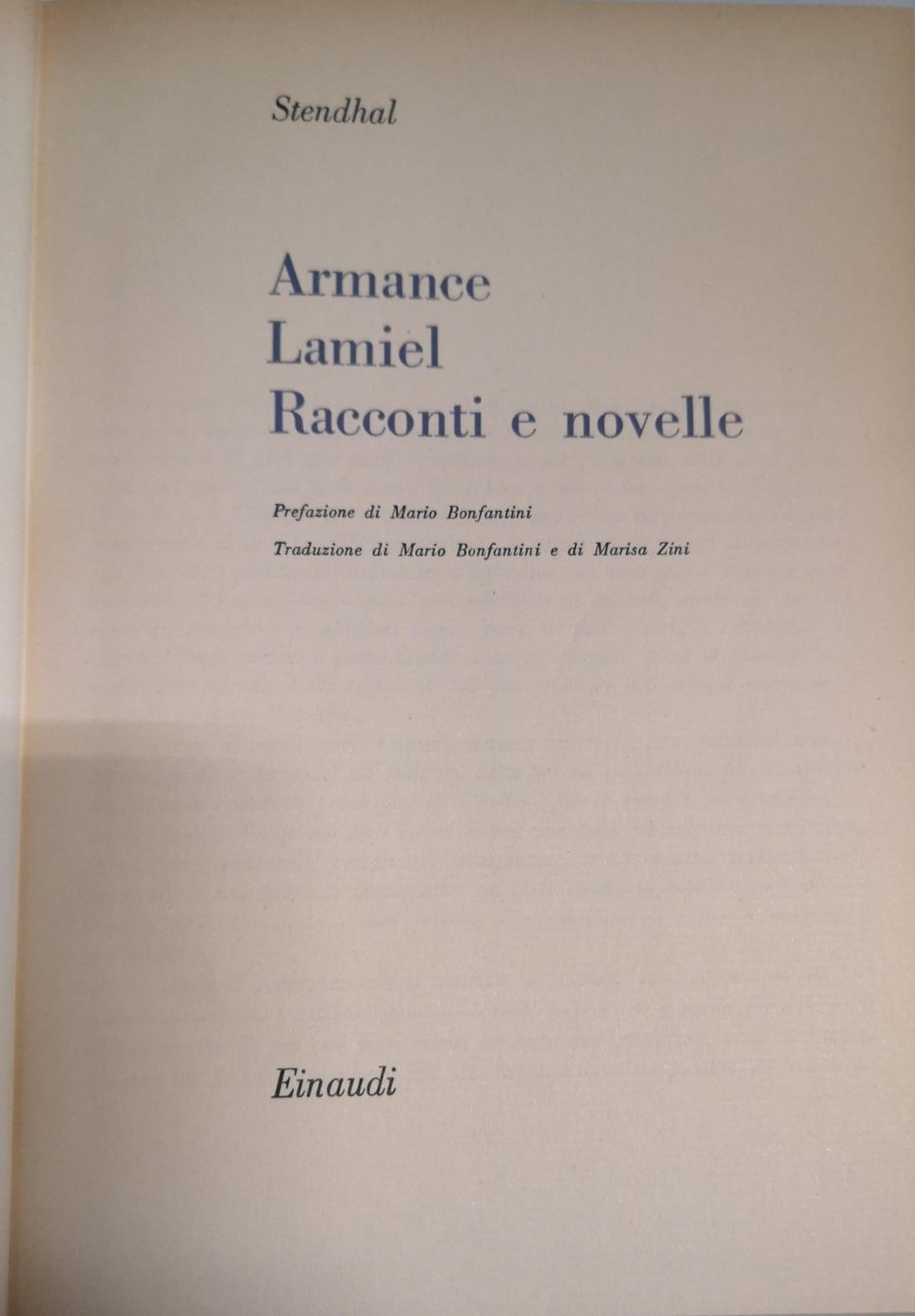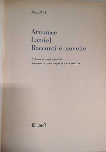 ARMANCE ; LAMIEL ; RACCONTI E NOVELLE. - Prefazione di Mario Bonfantini ; traduzione di Mario Bonfantini e Marisa Zini.