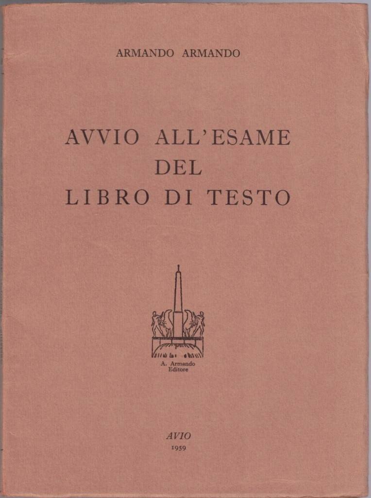 Armando Armando, Avvio ell’esame del libro di testo, Armando Armando Edizioni Avio, Roma 1959, pp. 78, cm 20, br. ed. Collana I problemi della didattica, vol. 8. Minima brunitura della carta, per il resto ottimo.