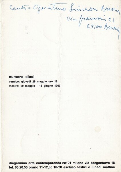 *ARMANDO ILACQUA - Numero dieci 1969. Diagramma Arte Contemporanea MILANO.