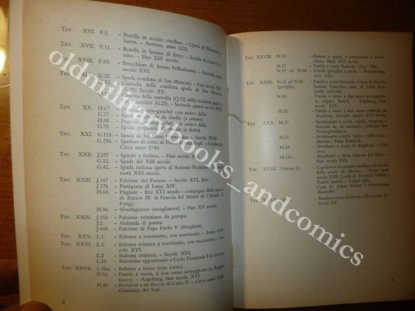 DESCRIZIONE: Stamperia Artisitica Nazionale 1959 I^ Ed. br.edit. illustrata a colori, pp. 61, con ill. n.t. XXXII tavv. b/n, in 16°. Bel vol. che descrive tutte le sale dell'Armeria Reale con descrizione dei pezzi museali ivi contenuti. All'indice le sale e nel testo relativa descrizione di quanto contenuto nelle stesse. Indice completo in foto. CONDIZIONI: Buone/Ottime. PESO / WEIGHT: 125 gr. without package