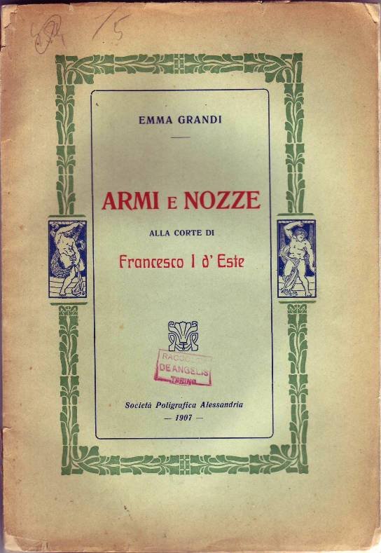 Volume in 8 grande, brossura editoriale figurata, titolo al piatto, frontespizio (timbro di collezione), 54 pp, bianca finale. In bello stato, intonso, piccole mende alla brossura. Interessante e piacevole saggio sulle costumanze rinascimentali delle Corti italiane (qui in particolare la Corte estense). Di non semplice reperibilit, importante.