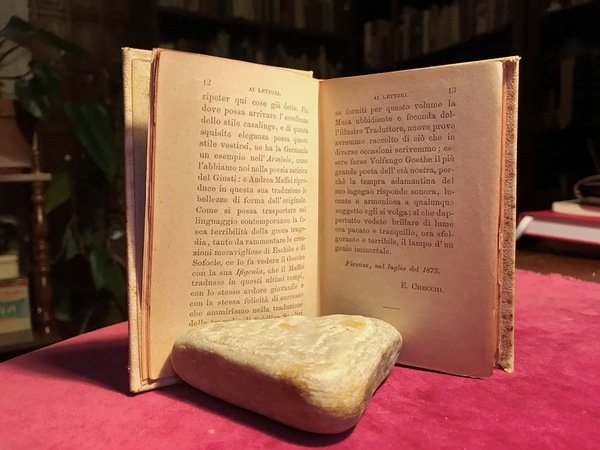 Volume in 16, tela editoriale impressa a secco, titolo al dorso, tagli colorati, sguardie, frontespizio, prefazione, 334 pp., indice. Traduzione di Andrea Maffei. Travolgente e passionale. Di gradevole lettura. La legatura, lenta, lamenta una diffusa fioritura. Piacevole.