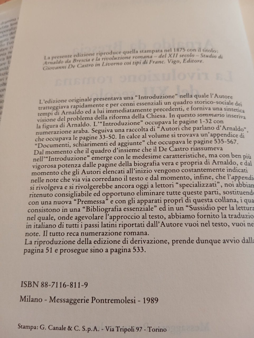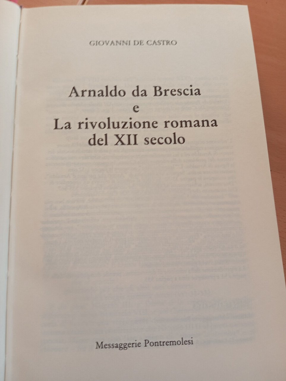 Arnaldo da Brescia e la rivoluzione romana del Secolo XII, G. De Castro, 1989