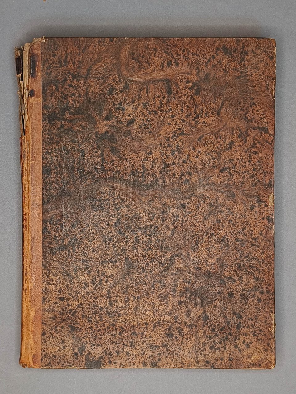 Cm 24,7. Pp. XX, 426. Legatura in mezza pelle con qualche abrasione. Parte superiore del dorso parzialmente staccata. Tagli spruzzati in azzurro. Testatine e finalini xilografici. Fioriture sparse alle carte.