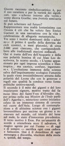 Soggetti: Narrativa italiana, Classici, Letteratura, Romanzi brevi, Fantasy, Fantascienza, Racconti, Ottocento, Libri Vintage Fuori catalogo, Collezionismo, Satira, Simbolismo, Futuro, Cosmologia, Libri rari, Acquario, Allegorie, Metafore, Cicli cosmici, Mesi platonici, Zodiaco, Stazioni zodiacali, Alan Leo, Leone, Miti, Giganti, Saint-Yves d'Alveidre, Mission de l'Indie, Agartha, Asia, Eros, Umanità, Destino, Ironia, Enrico VII, Intellettuali, Autori napoletani, Napoli, Il Mare di Sparto, Italian fiction, Classics, Literature, Short novels, Science fiction, Short stories, Nineteenth century, Out of print books, Collectibles, Satire, Symbolism, Future, Cosmology, Rare books, Aquarius, Allegories, Metaphors, Cosmic cycles, Platonic months, Zodiac, Zodiacal stations, Lion, Myths, Giants, Mission de l'Indie, Humanity, Destiny, Irony, Henry VII, Intellectuals, Neapolitan authors, Naples, The Sea of Sparto
