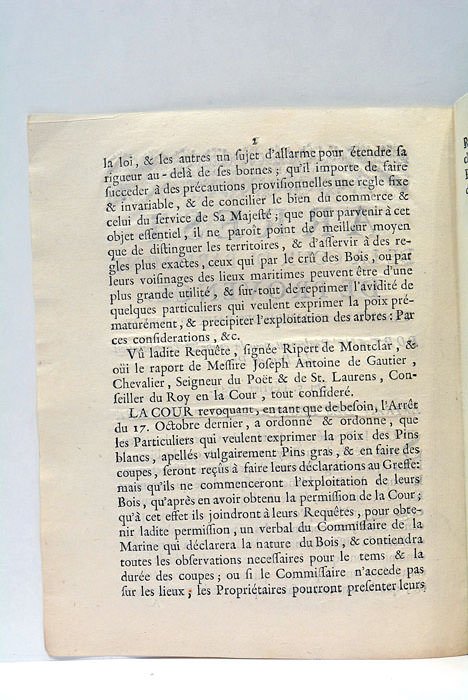 3 pages. (21x17 Cm). Broché. Non-relié. Légères salissures. Sur le droit de couper les Pins blancs sur autorisation de la Cour.