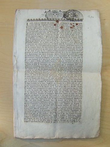 1 brochure in-4, 1719, 15 pp. Avec les annotations liminaires manuscrites de Roques, "conseiller du Roy, faisant les fonctions de Secrétaire de la Chancelerie", huissier au présidial de Montpellier avec le cachet de Montpellier sur chacun des feuillet. Etat satisfaisant (dernier ff. frotté avec petits mq., petites taches en première page.)