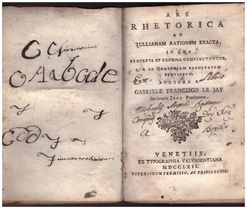 In 16, leg. in piena pergamena, titolo al dorso, tagli marmorizzati, pp. 400. Scritte ad inchiostro al piatto ant., alle prime bianche e al frontespizio, fori e canali di tarlo all'interno, alcuni intaccanti il testo, fior. Discrete condizioni- ATTENTION. If the book is older than 50 years Please contact us BEFORE to order it. In this caseits not immediately available to export and we will send you more information about cost and timing.Luogo di pubblicazione VenetiisEditore Ex Typographia ValvasentianaAnno pubblicazione 1762 ***Due to bureaucratic reasons, books dated over 70 years old cannot be immediately exported, please contact us before placing the order.***