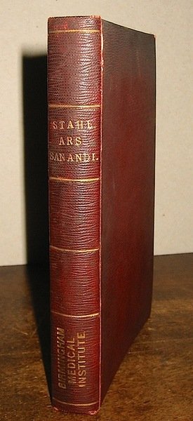 12mo (cm. 15), 1 c.nn., 312 pp. Frontis. in rosso e nero. Legatura inizi ‘900 in piena tela con titolo oro al ds. Tagli colorati. Scritte di antica mano sulla prima carta bianca. Ottimo esemplare. Provenienza: Birmingham Medical Institute (scritta in oro al piede del ds. e timbretti, di cui uno al frontis. ed altri su alcune carte interne). Opera rara, non rinvenuta nella bibliografia consultata: questo titolo è presente nel catalogo dei Libri pubblicato dai ‘Fratres Horthemels’ (p. 39).
