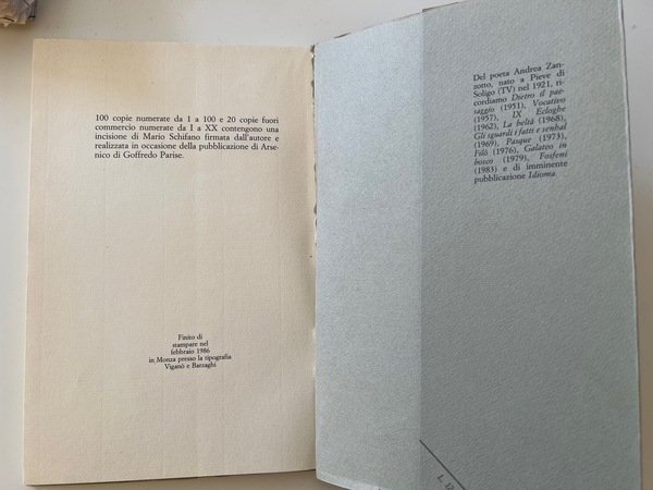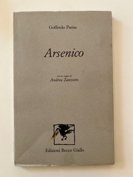 cm 22x14; con un saggio di Andrea Zanzotto e la pref. dell' aut.; intonso; prima edizione. Scritto nel 1962 Arsenico è secondo Parise anzitutto un esercvizio di stile. Certamente, al di là degli aspetti letterari, è una leggibilissima e profonda radiografia anticipatrice di una società osservata e "Intuita" in un periodo, gli anni '60 appunto, in cui gli speciali organi sensori di pochi riuscivano ad avvertire i rumori premonitori della "mortale" deflagrazione consumistica di quel decennio