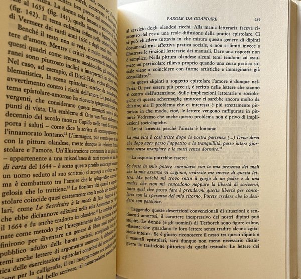 L'incanto speciale del libro è nella duttilità con cui questo assunto teorico si piega agli aspetti più segreti e in apparenza più marginali della pittura olandese del Seicento: la presenza costante dei nuovi strumenti ottici, l'amore per l'illustrazione documentaria, la passione calligrafica e soprattutto cartografica, che culmina nelle grandi carte di Vermeer. E se Vermeer è il compendio e il vertice di questa civiltà figurativa, Rembrandt è l'antagonista, il grande isolato immerso in un suo sogno metafisico nel vivo di una società mercantile e in fondo epicurea, mai sazia di contemplare le meraviglie del visibile e di perseguirne, borghesemente, il possesso. A questa avventura dello sguardo le splendide illustrazioni forniscono molto più che un debito sostegno visivo: l'intelligenza dei confronti ne fa un vero testo nel testo, dove il piacere estetico si risolve in raffinata esperienza intellettuale.