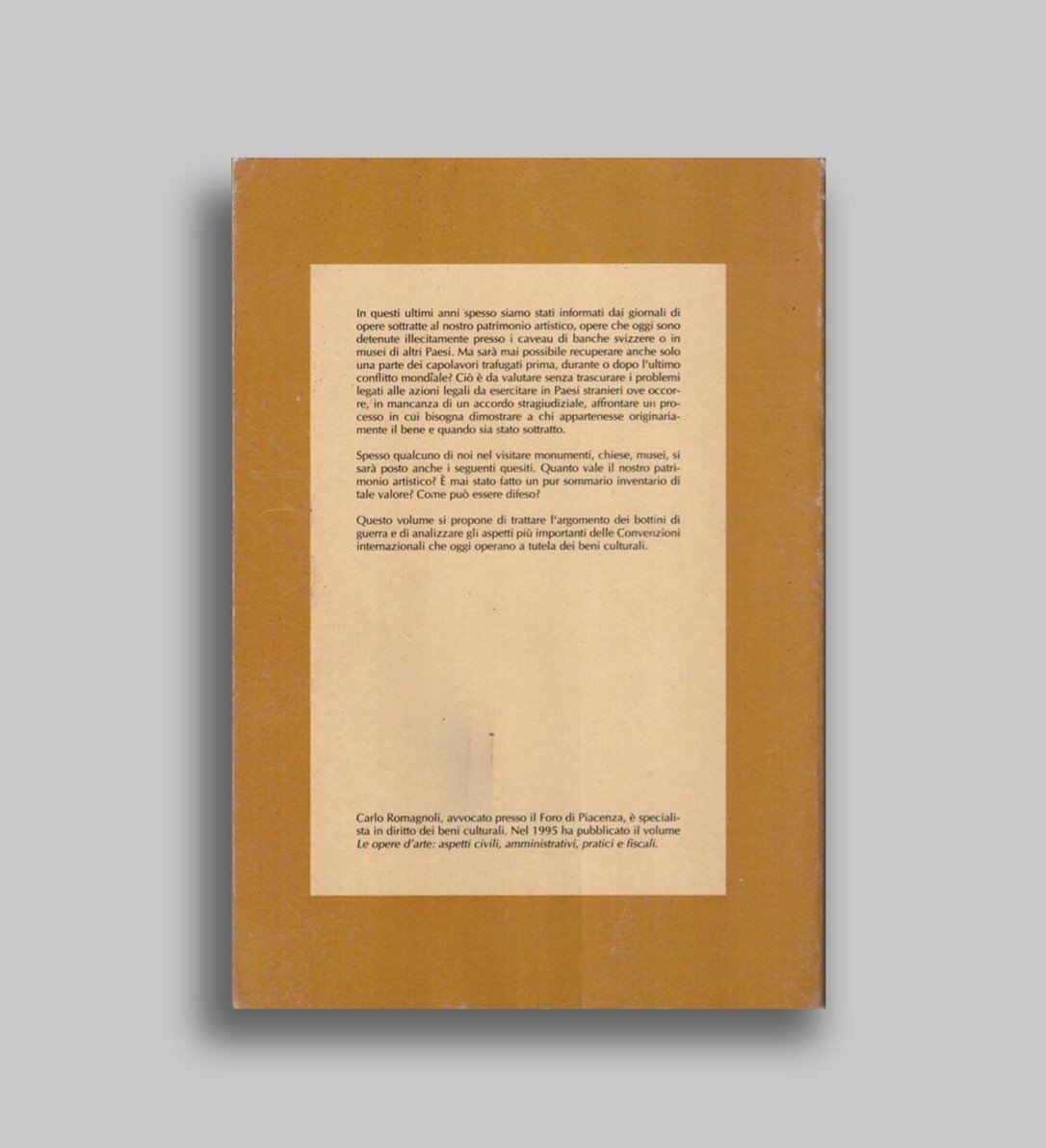 Questo volume si propone di trattare l'argomento dei bottini di guerra e di analizzare gli aspetti più importanti delle Convenzioni internazionali che oggi operano a tutela dei beni culturali. Buone condizioni generali, minimi segni del tempo