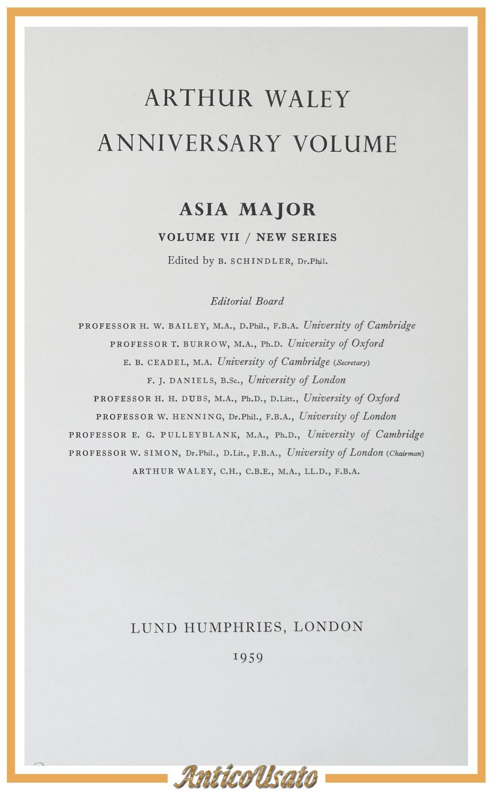 ARTHUR WALEY ANNIVERSARY ASIA MAJOR VOLUME VII 1959 Lund Humphries Libro