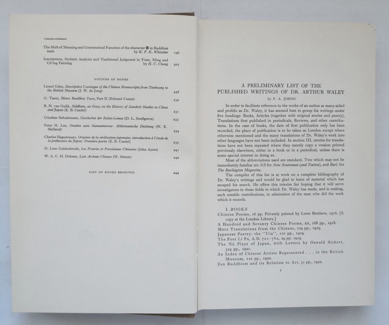 ARTHUR WALEY ANNIVERSARY VOLUME. Asia Major. Volume VII / New Series.