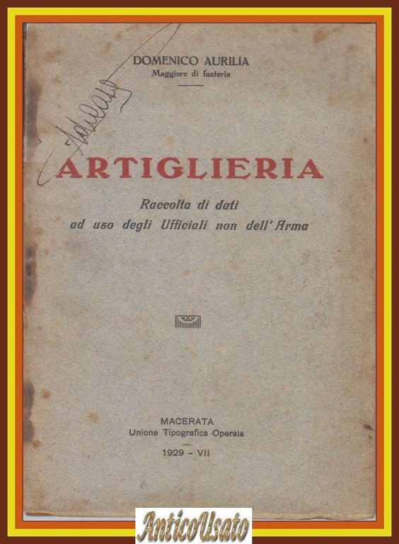 ARTIGLIERIA raccolta di dati uso degli Ufficiali dell'Arma Domenico Auria libro