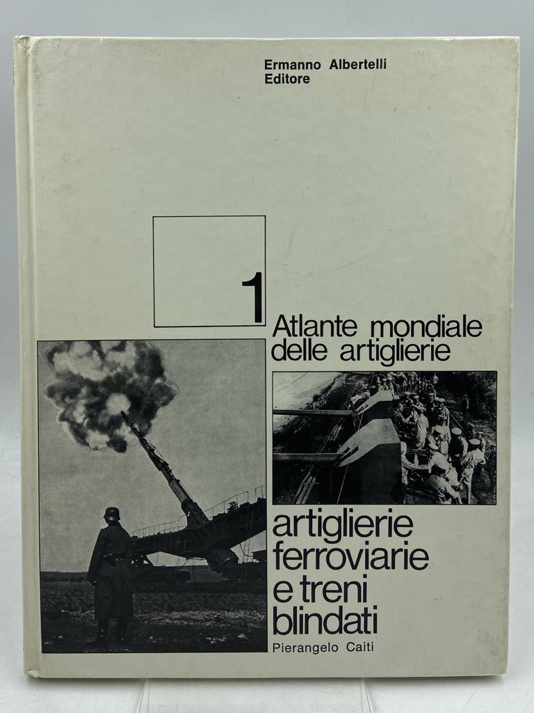 Cartonato editoriale illustrato, cm 29 x 22.5, pp 119 (1); illustrazioni in nero nel testo. Primo e unico pubblicato volume dell’Atlante mondiale delle artiglierie, che presenta nazione per nazione carrozze e convogli blindati, armati, contraerei ecc, con fotografie d'epoca e schemi tecnici.