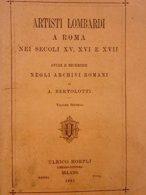 Artisti lombardi a Roma nei secoli XV, XVI e XVII. Studi e ricerche negli archivi romani.